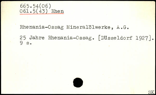 Rhenania-Ossag Mineralölwerke, A.G-. 25 Jahre Rhenania-Ossag. [Düsseldorf 1927].