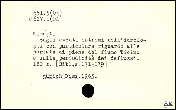 Sugli eventi estremi nell'idrolo-gia con particolare riguardo alle portate di piena del fiume Ticino e sulle periodicita dei deflussi.