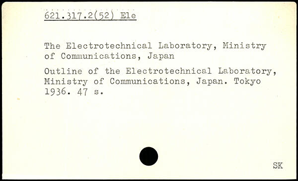 The Electrotechnical Laboratory, Ministry of Communications, Japan Outline of the Electrotechnical Laboratory, Ministry of Communications, Japan.