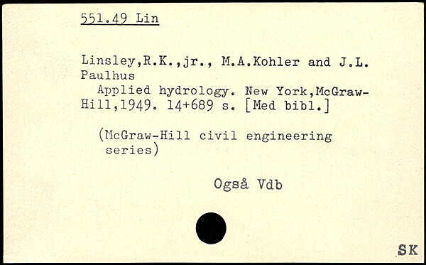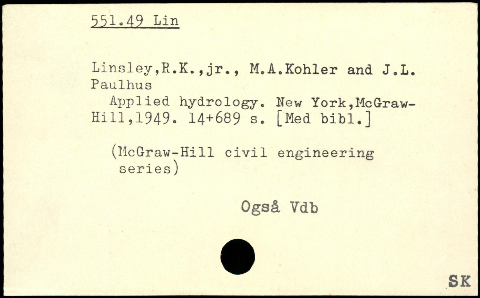 Linsley,R.K., jr., M.A.Kohler and J.L. Paulhus Applied hydrology.