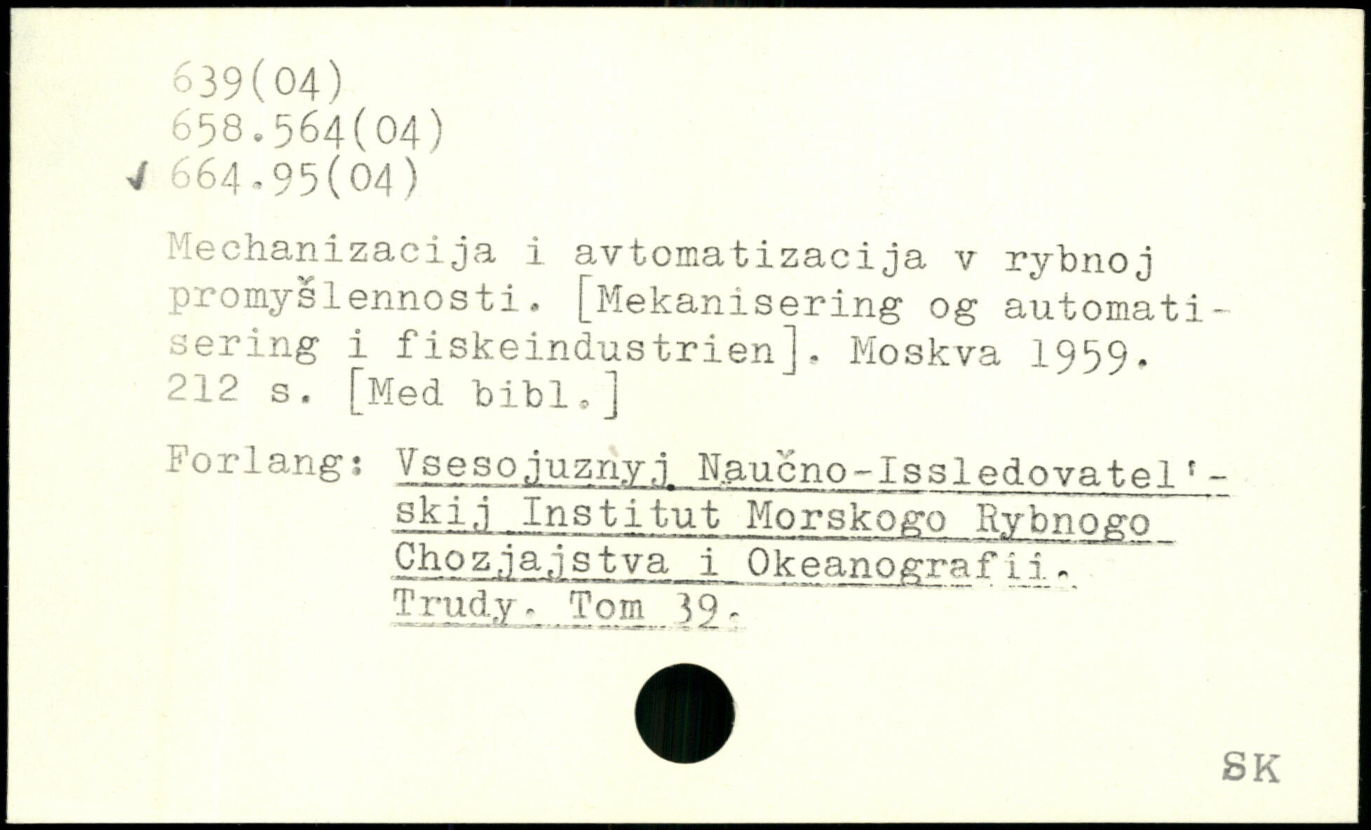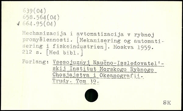 Mechanizacija i avtomatizacija v rybnoj promyslennosti. [Mekanisering og automatisering i fiskeindustrien].
