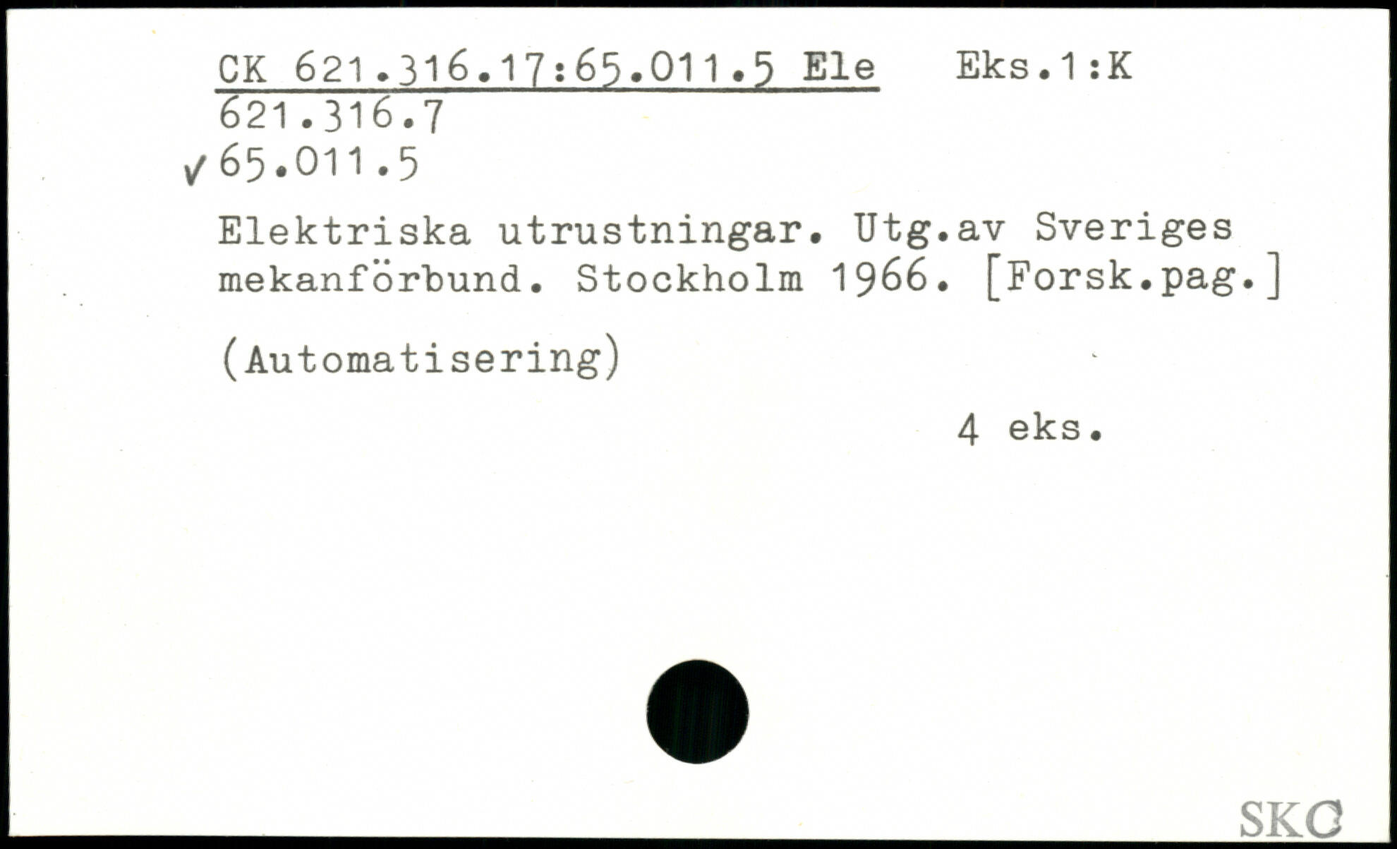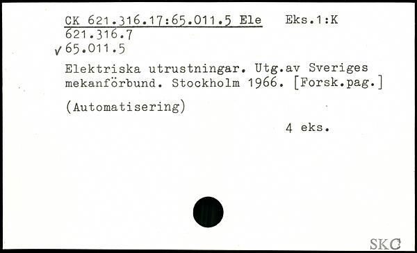 Elektriska utrustningar. Utg.av Sveriges mekanförbund.