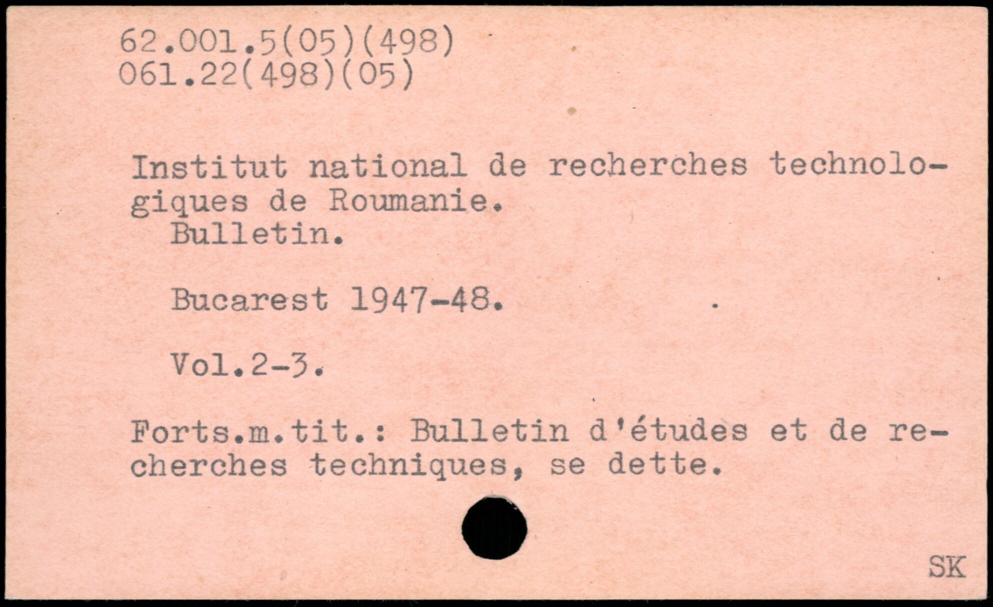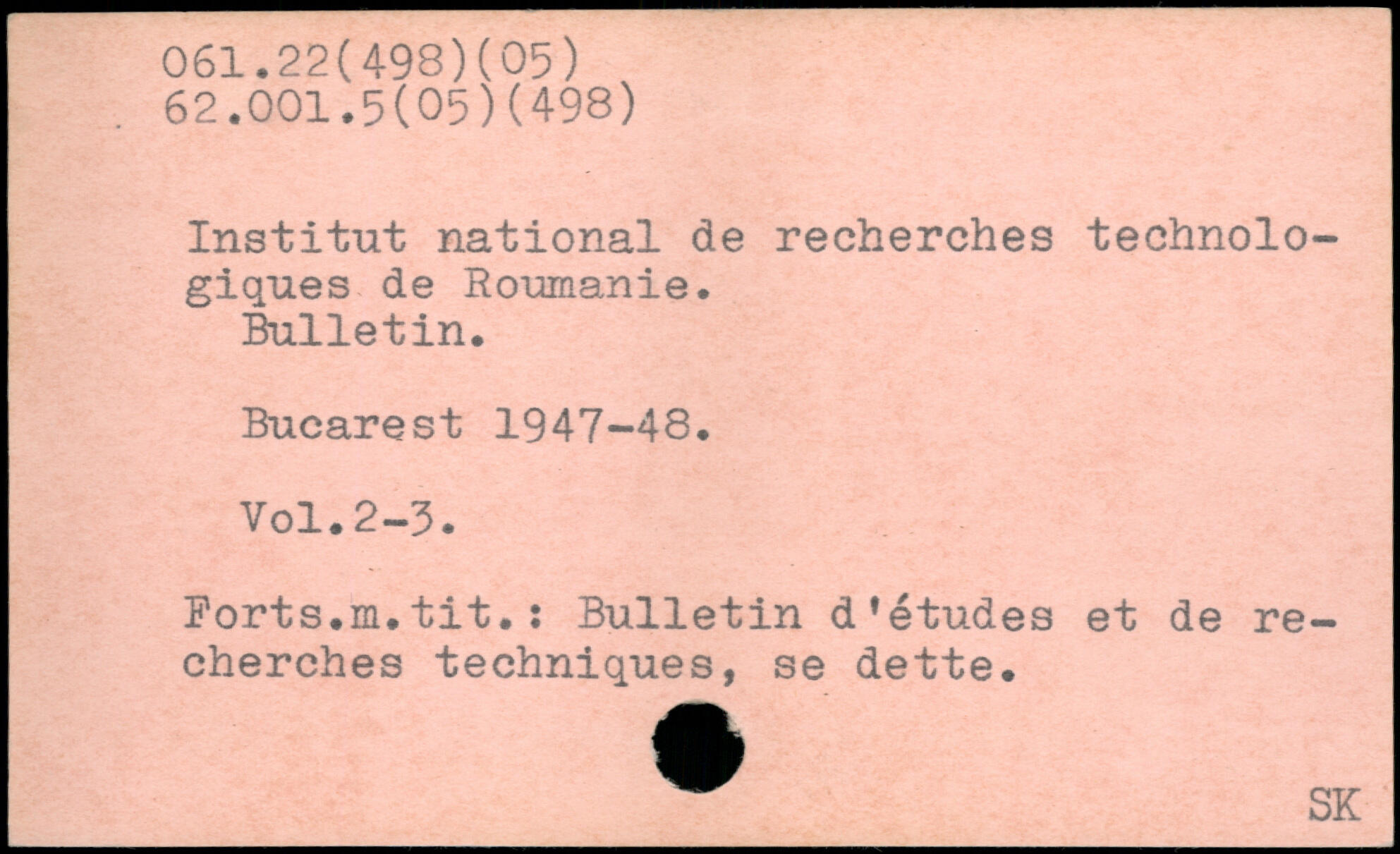 Institut national de recherches technolo-giques de Roumanie. Bulletin.