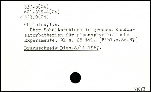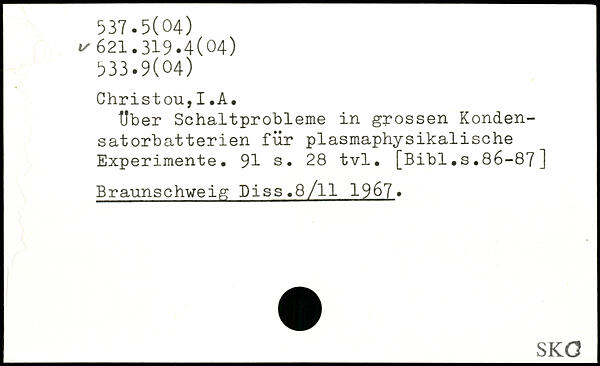 über Schaltprobleme in grossen Kondensatorbatterien für plasmaphysikalische Experimente.