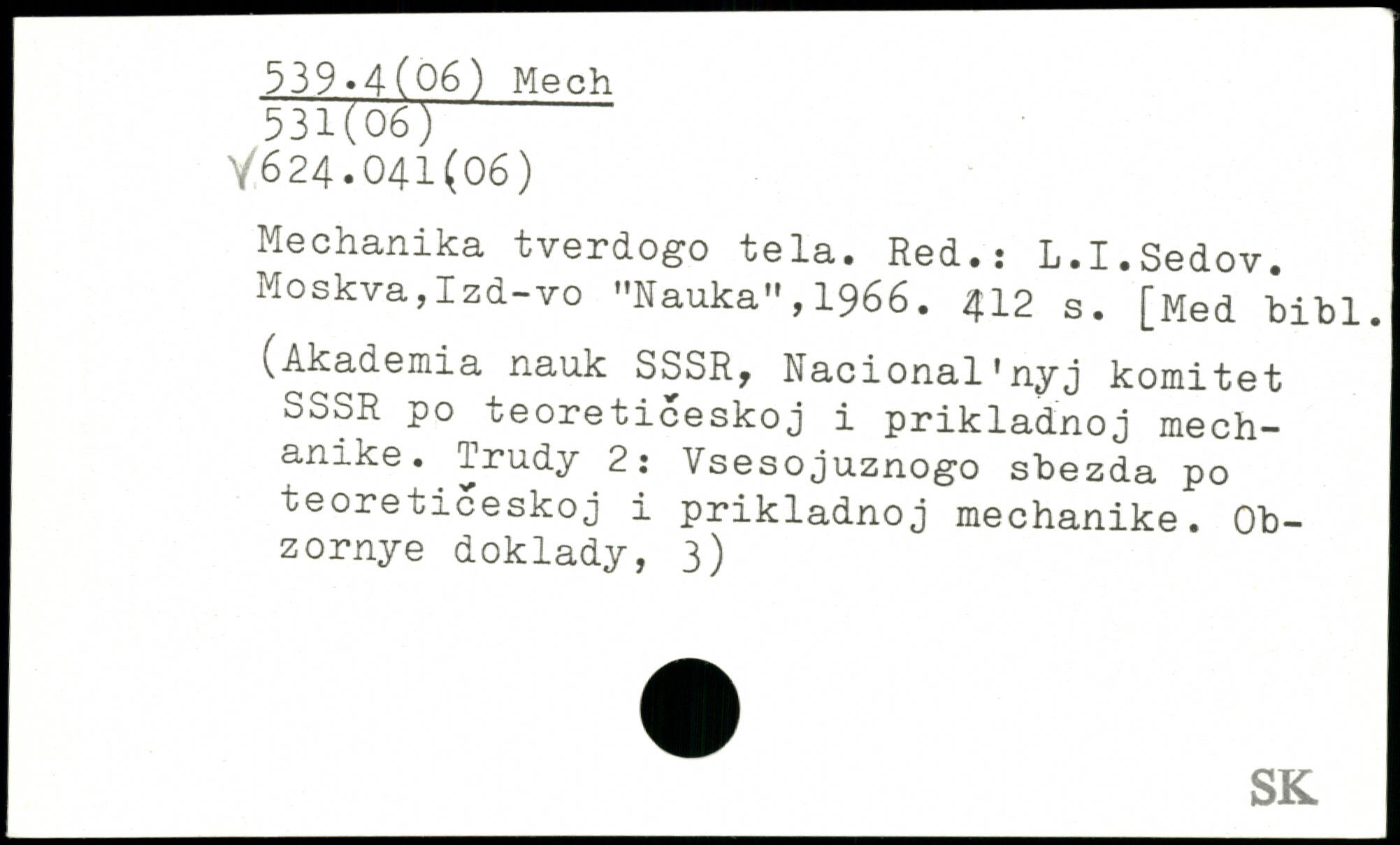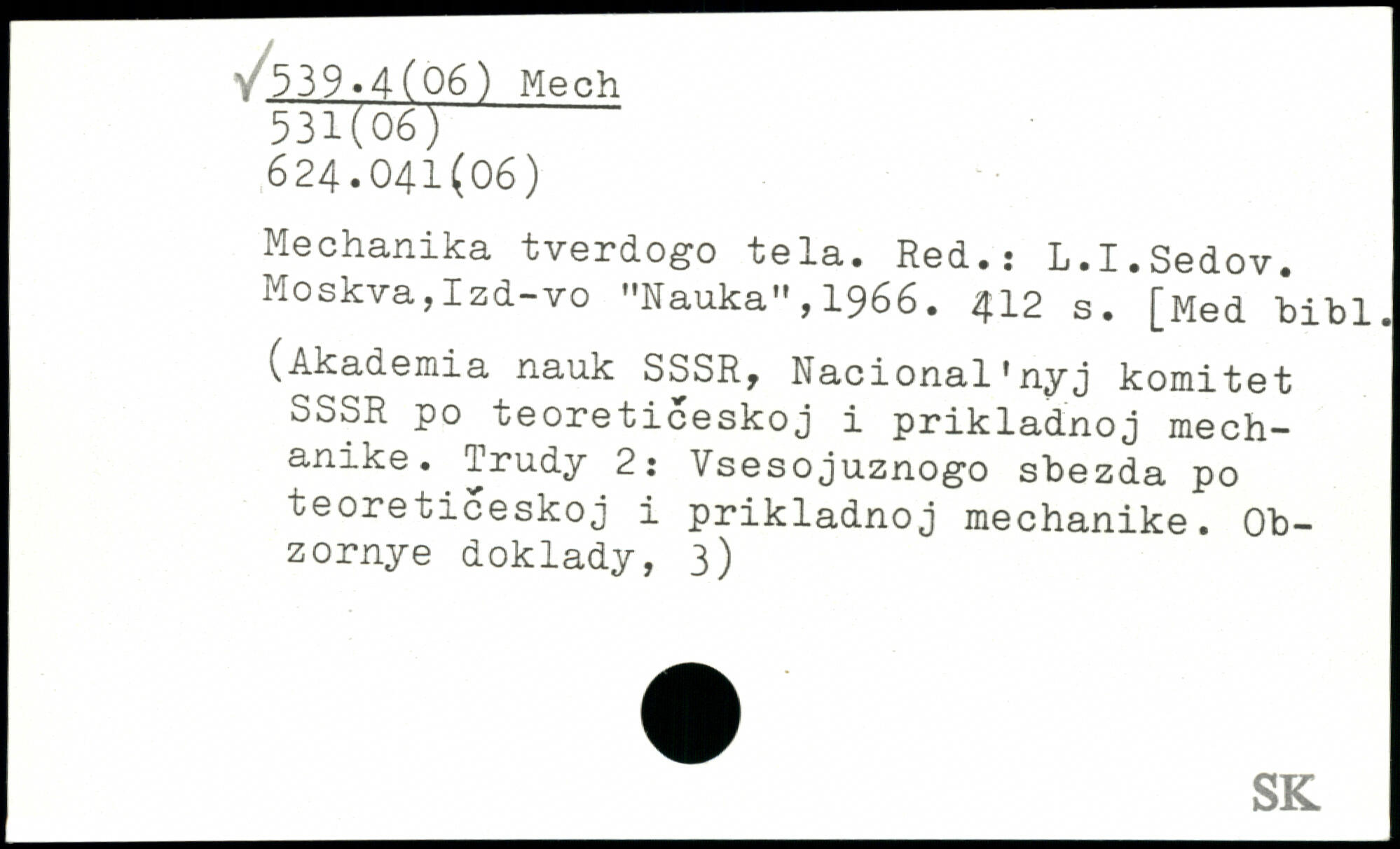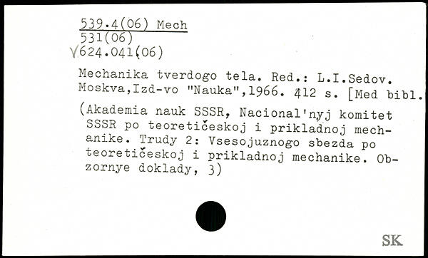 Mechanika tverdogo tela. Red.: L.I.Sedov. Moskva,Izd-vo "Nauka",1966.