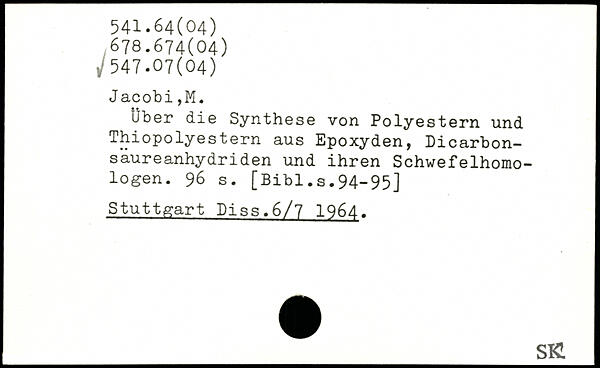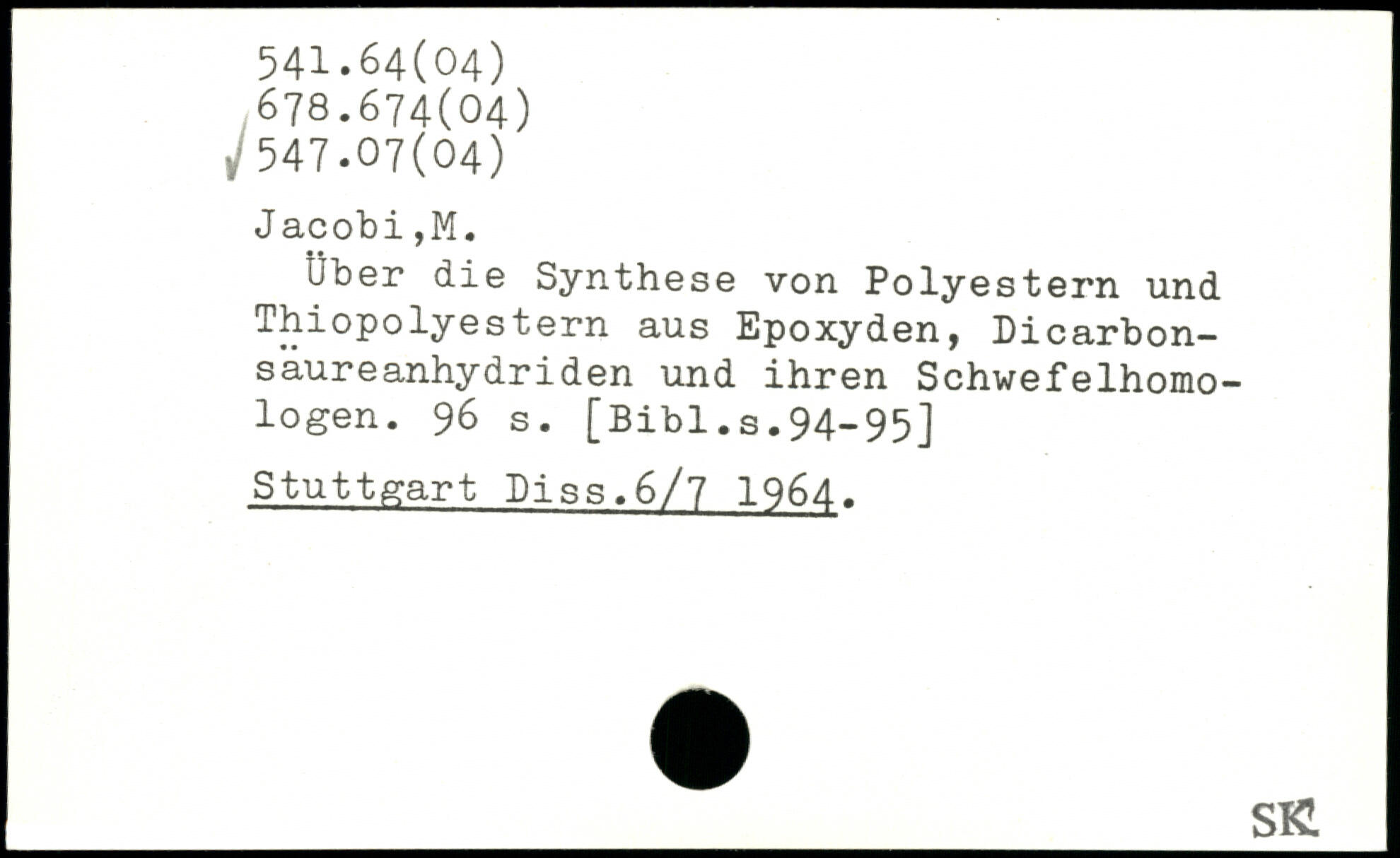 Über die Synthese von Polyestern und Thiopolyestern aus Epoxyden, Dicarbon-saureanhydriden und ihren Schwefeihomologen.