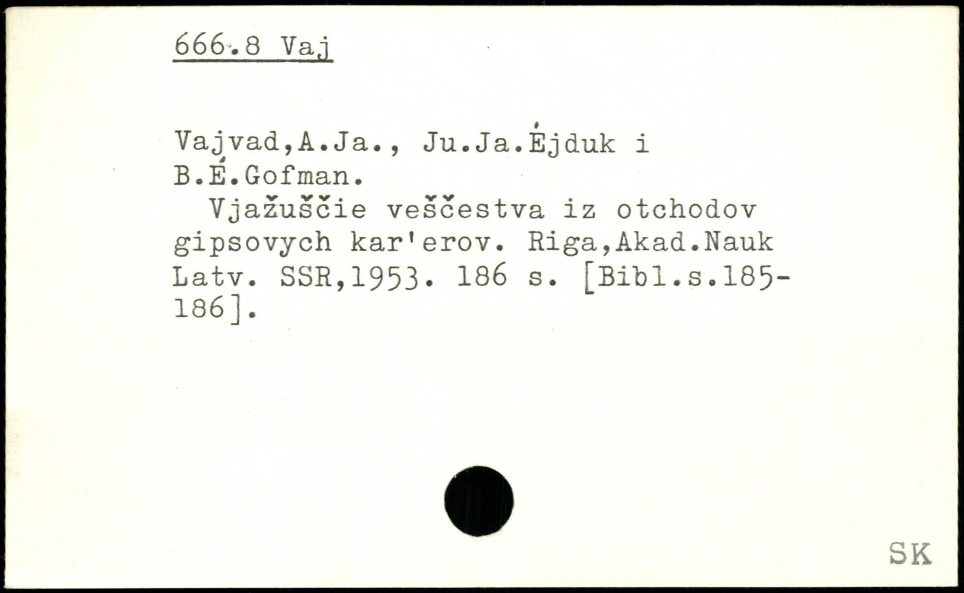 Vajvad,A.Ja., Ju.Ja.Éjduk i B.E.Gofman. Vjazuscie vescestva iz otchodov gipsovych kar'erov. Riga,Akad.Nauk Latv. SSR,1953.
