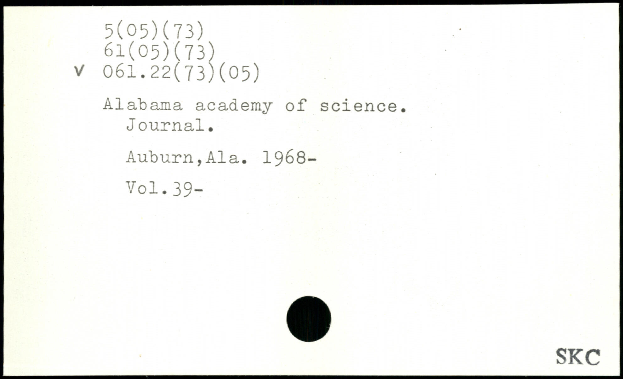 Alabama academy of science. J ournal. Auburn,Ala. 1968-