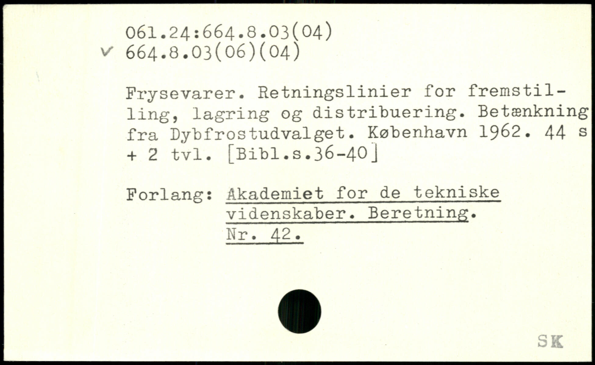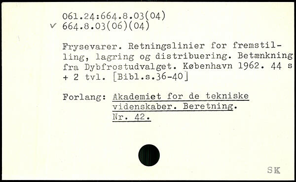 Frysevarer. Retningslinier for fremst1111ng, lagring og distribuering. Betænkning fra Dy "bf ros tudvalget.