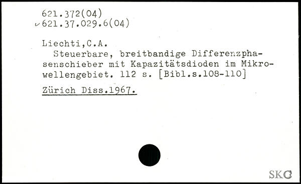 Steuerbare, breitbandige Differenzphasenschieber mit Kapazitätsdioden im Mikrowellengebiet.