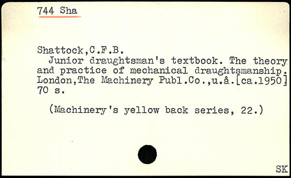 Junior draughtsman's textbook. The theory and practice of mechanical draughtsmanship. London,The Machinery Publ.Co.,u.&.[ca.1950]