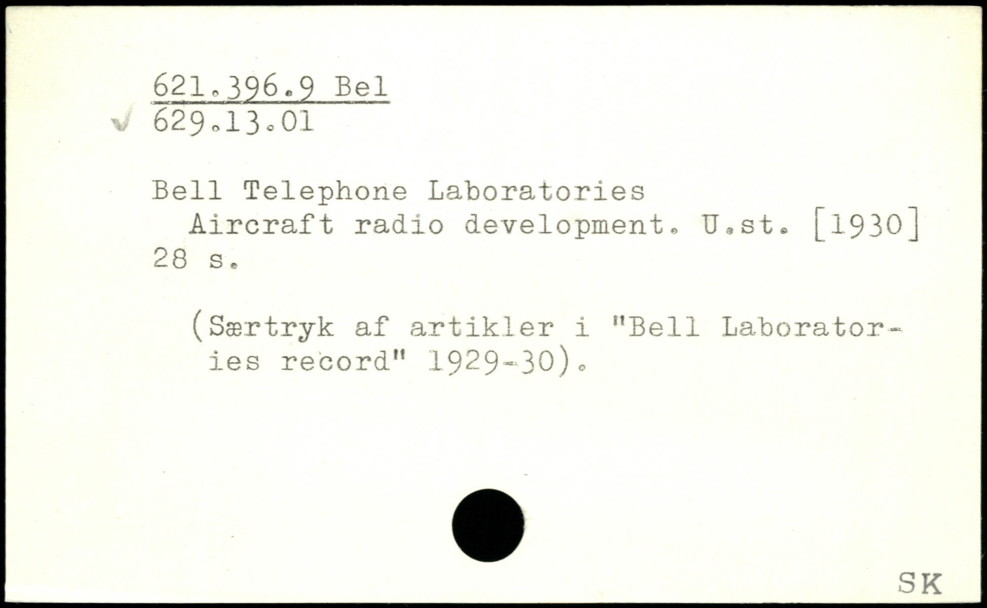 Bell Telephone Laboratories Aircraft radio development, U.st. [l.930]