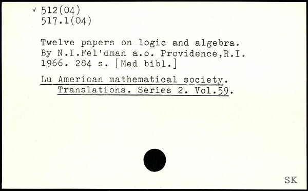 Twelve papers on logic and algebra. By N.I.Fel'dman a.o. Providence,R.I. 1966.
