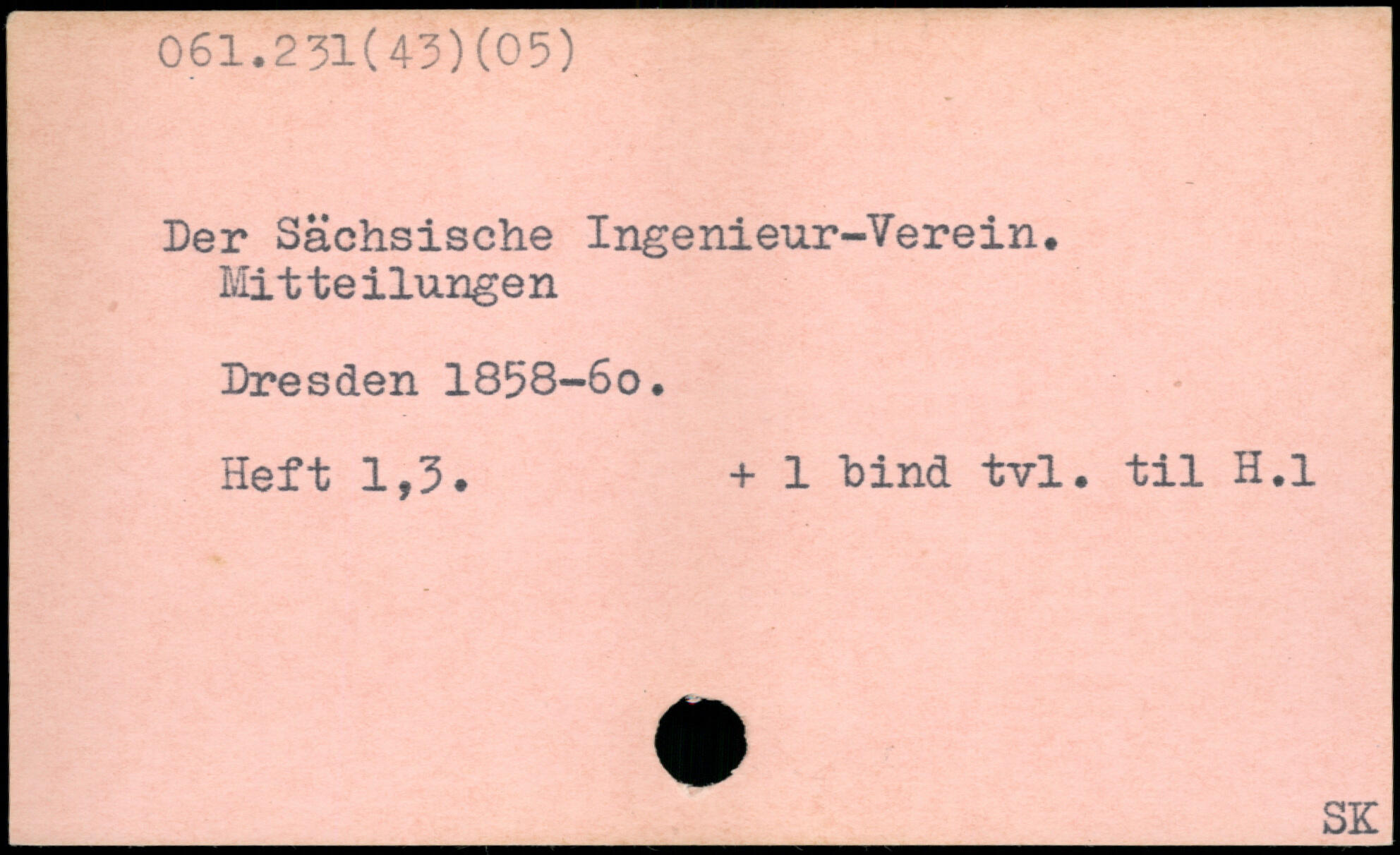 Der Sächsische Ingenieur-Verein. Mitteilungen Dresden 1858-6o. Heft 1,3. +1 “bind tvl. til H.l