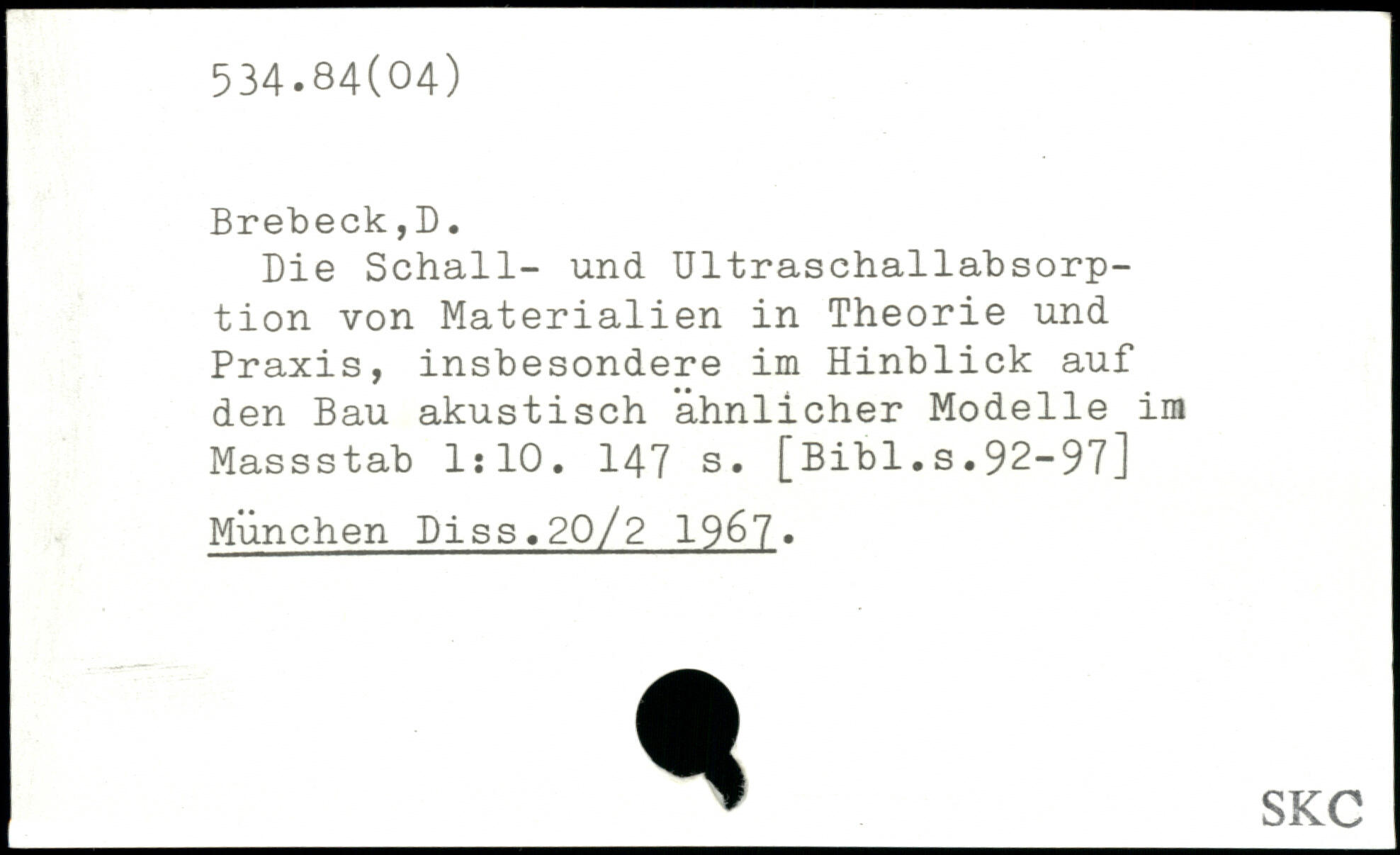 Die Schall- und Ultraschallabsorption von Materialien in Theorie und Praxis, insbesondere im Hinblick auf den Bau akustisch ähnlicher Modelle im Massstab 1:10.