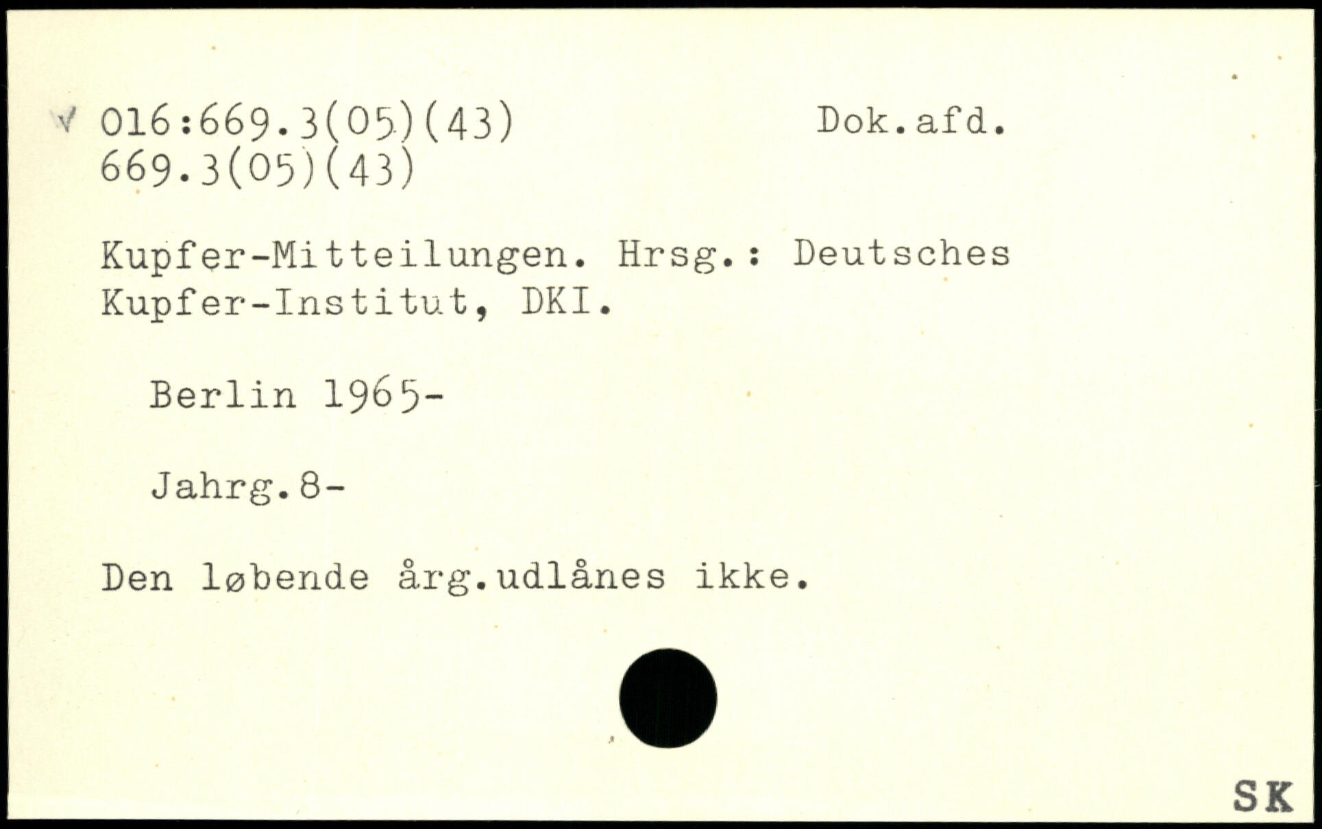 Kupfer-Mitteilungen. Hrsg.: Deutsches Kupfer-Institut, DKI.
