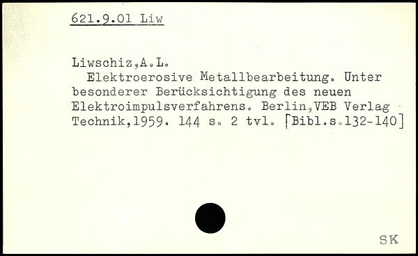Elektroerosive Metallbearbeitung. Unter besonderer Berücksichtigung des neuen Elektroimpulsverfahrens.