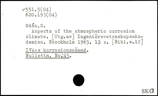 Aspects of the atmospheric corrosion climate. [Utg.av] Ingeniorsvetenskapsaka-demien.