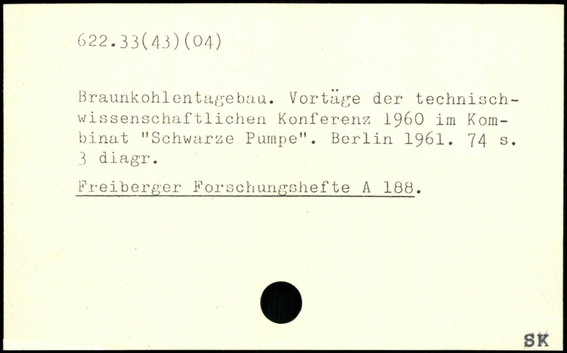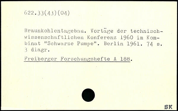 Braunkohlentagebau. Vortage der technisch-wissenschaftlichen Konferenz 1960 im Kombinat "Schwarze Pumpe".