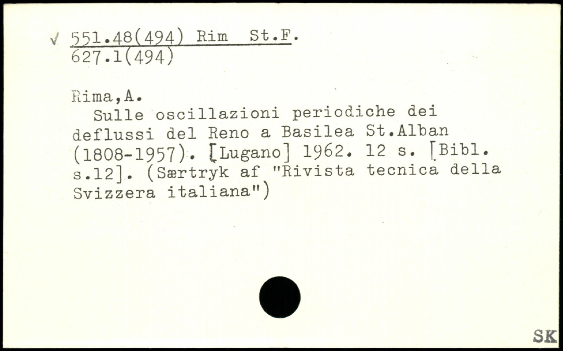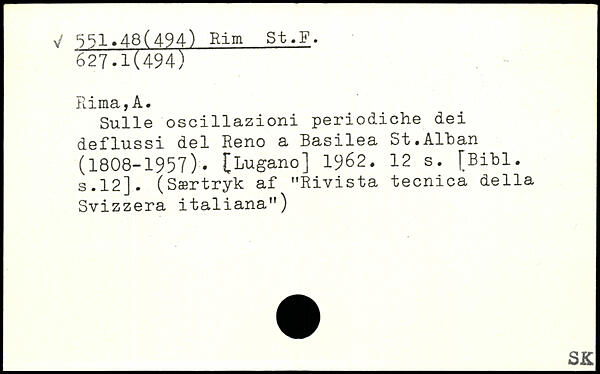 Sulle oscillazioni periodiche dei deflussi del Reno a Basilea St.AlLan (1808-1957). [Lugano] 19^2.