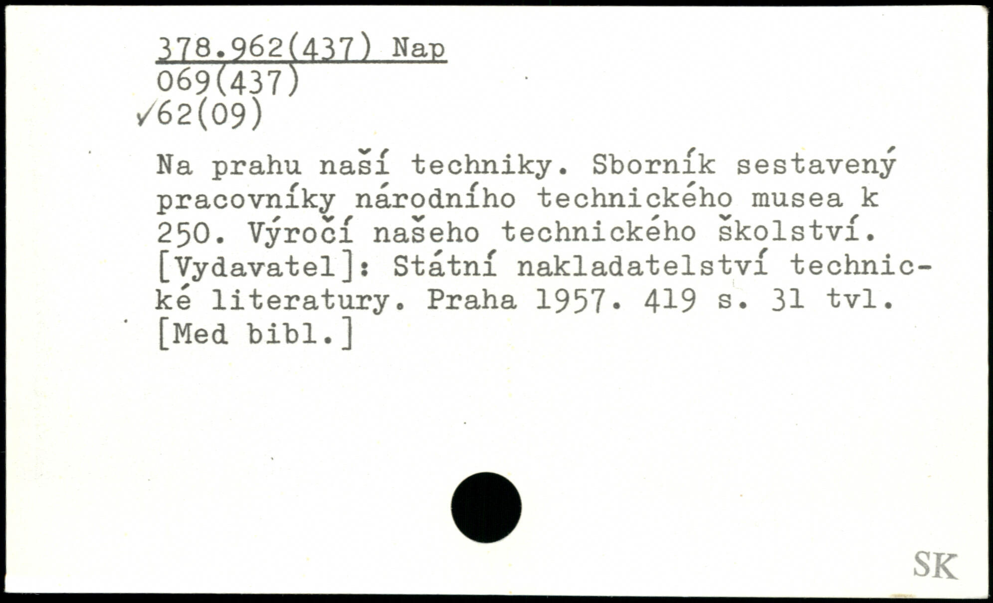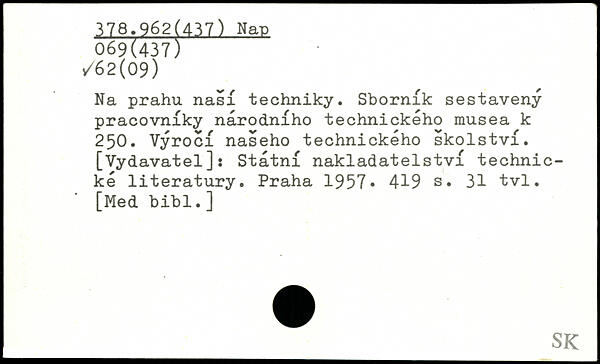 Na prahu nasi techniky. Sbornik sestaveny pracovniky narodniho technického musea k 25O. Vyroci naseho technického skolstvi.