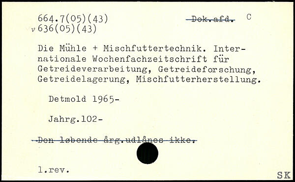Die Mühle + Mischfuttertechnik. Internationale Wochenfachzeitschrift für GetreideVerarbeitung, Getreideforschung, Getreidelagerung, Mischfutterherstellung. Detmold 1965- Jahrg.102- —1-ebondo -arg-rUd^^eG-ikkOT' X-rev-_SK