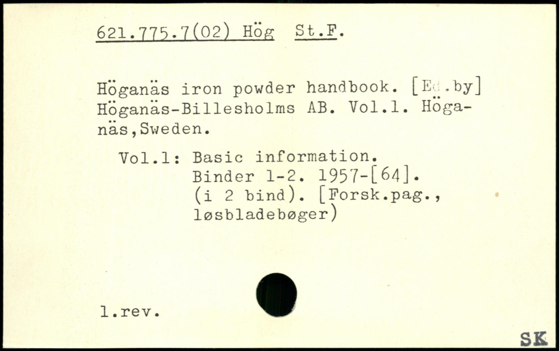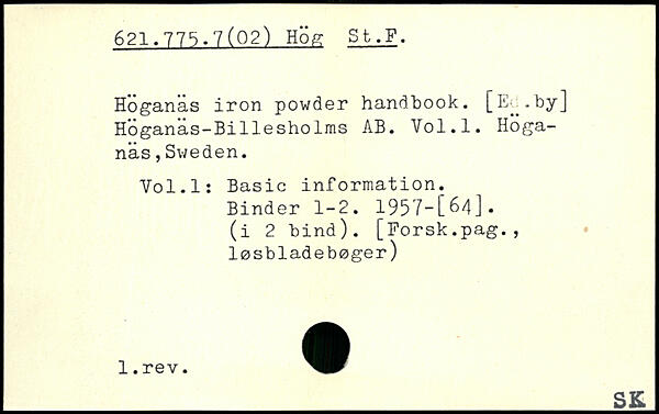 Hoganas iron powder handbook. [E^.by] Höganäs-Billesholms AB.