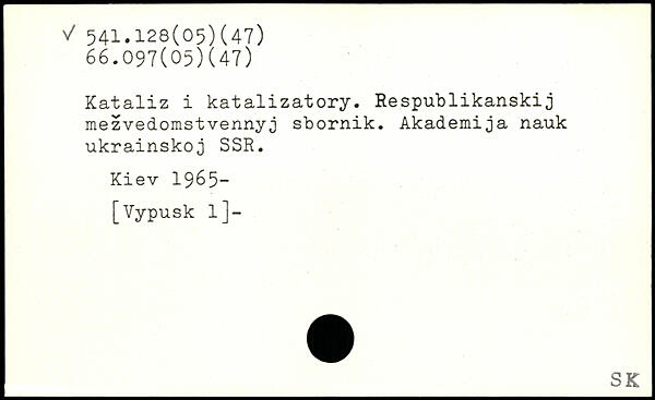 Kataliz i katalizatory. Respublikanskij mezvedomstvennyj sbornik. Akademija nauk ukrainskoj SSR. Kiev 1965-