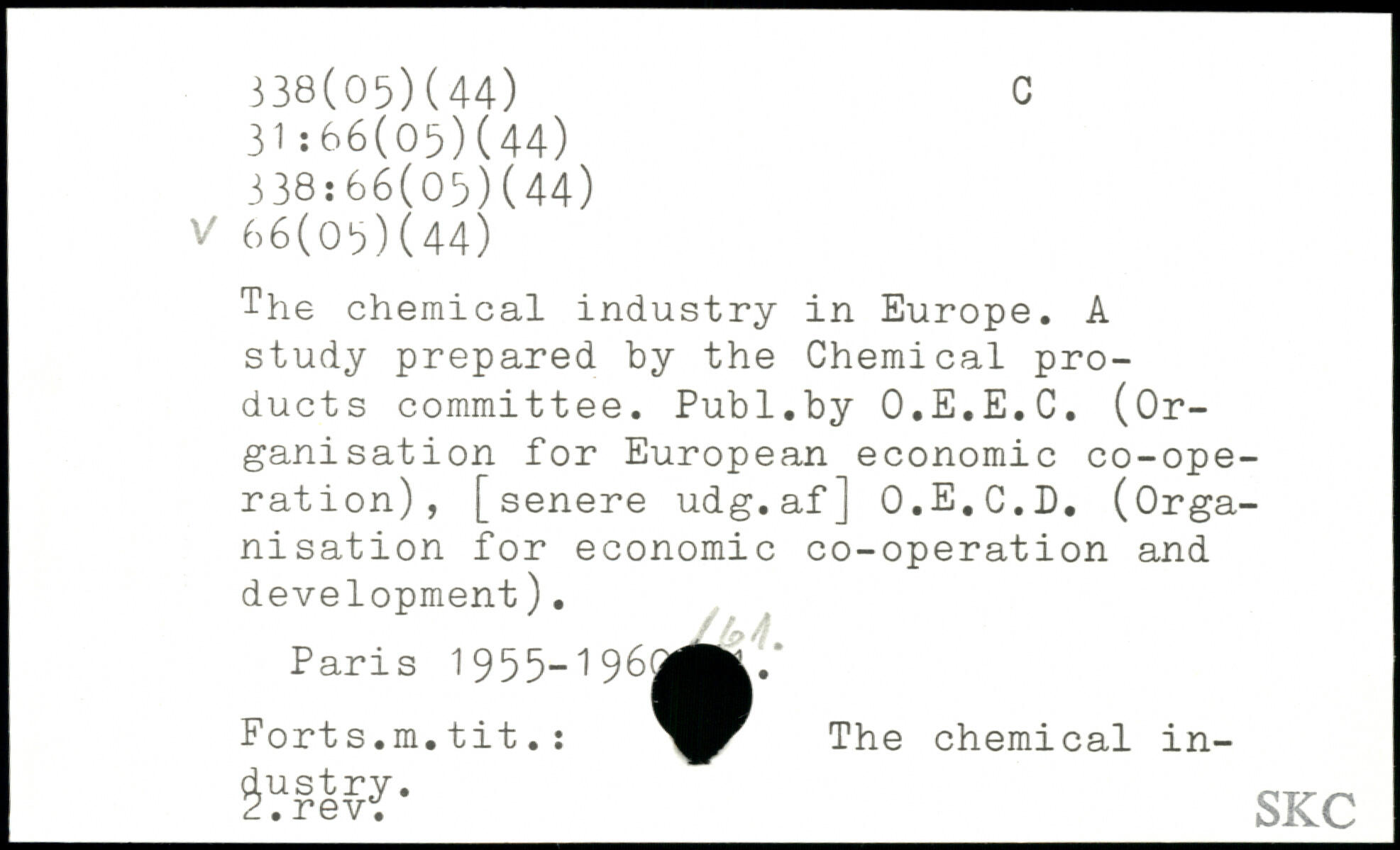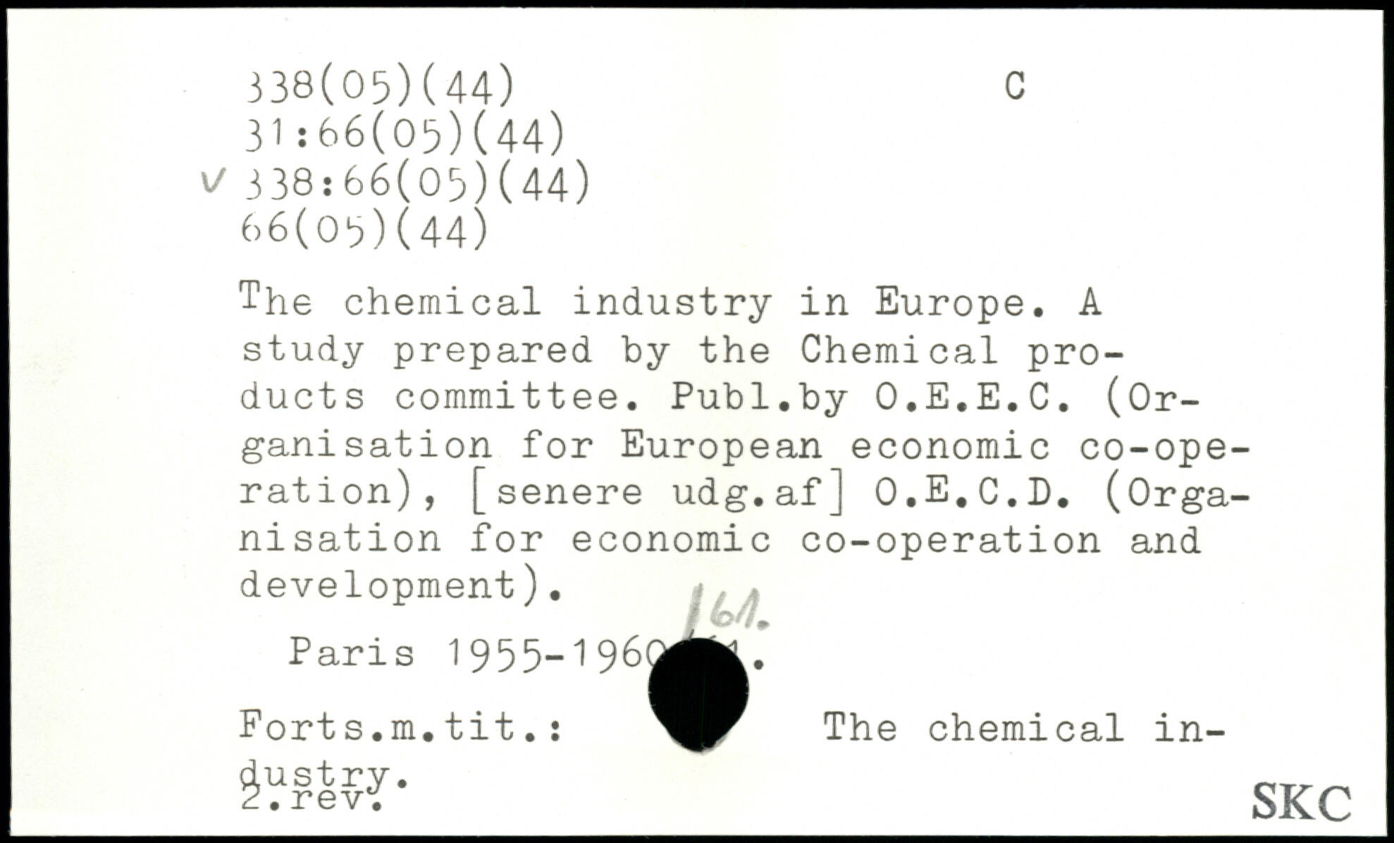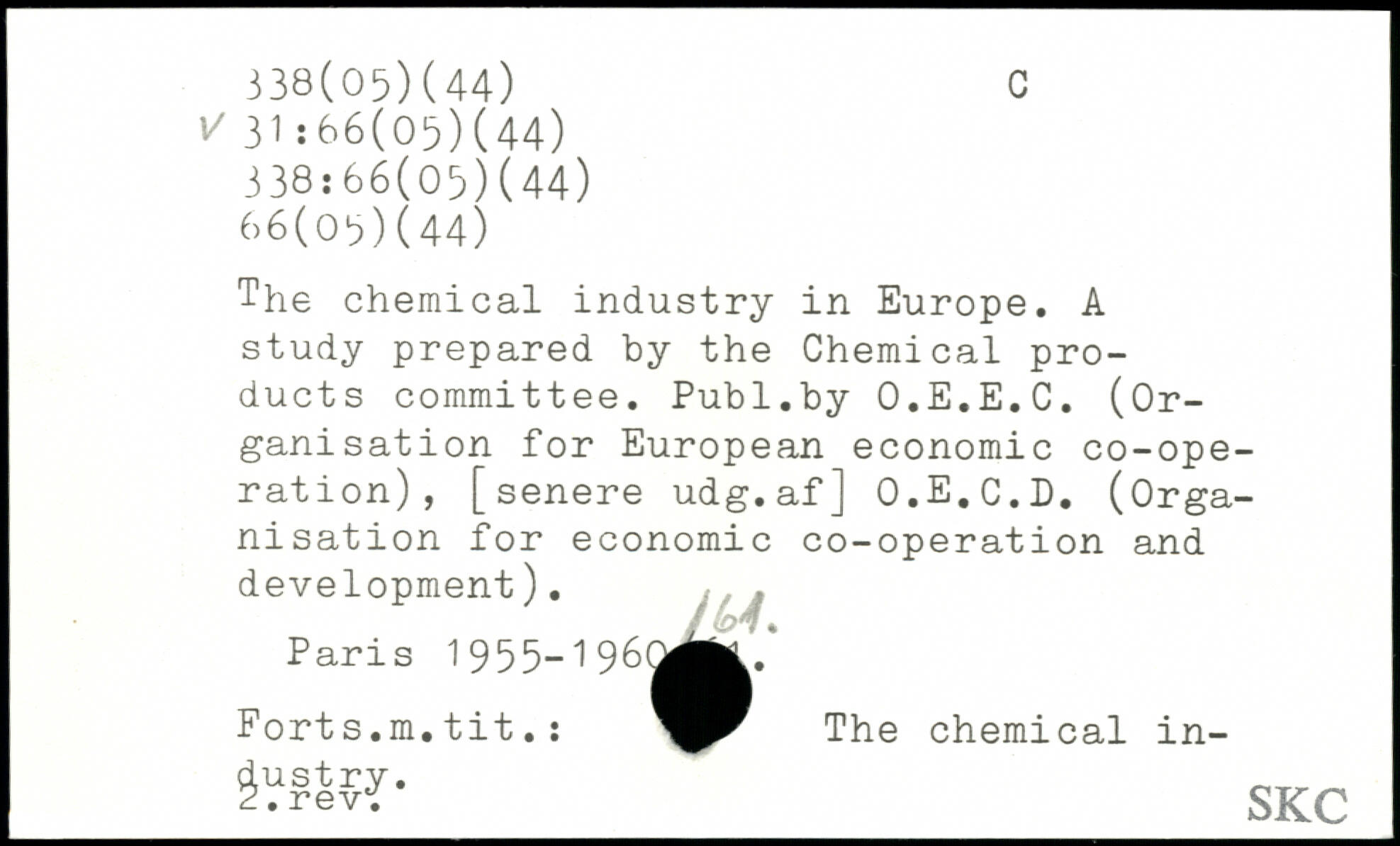 The chemical industry in Europe. A study prepared by the Chemical products committee.