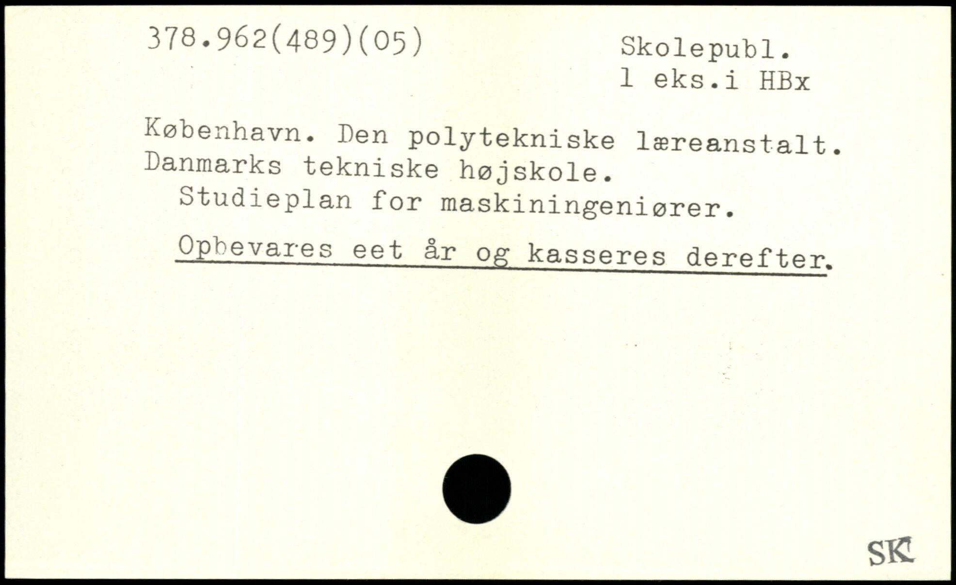 København, ben polytekniske læreanstalt, banmarks tekniske højskole. Studieplan for maskiningeniører. Opbevares eet år og kasseres derefter.