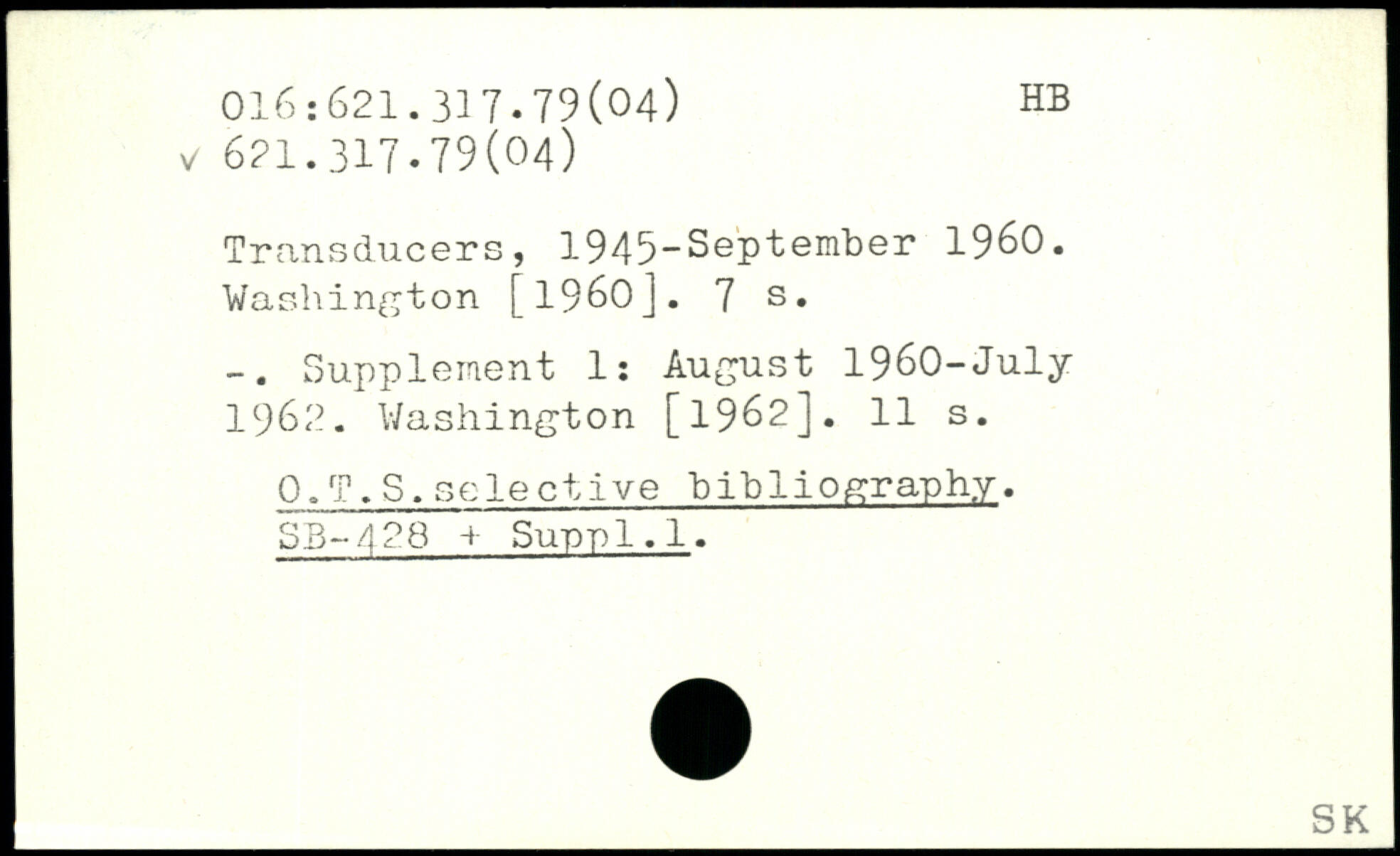 Transducers, 1945-September 1960.