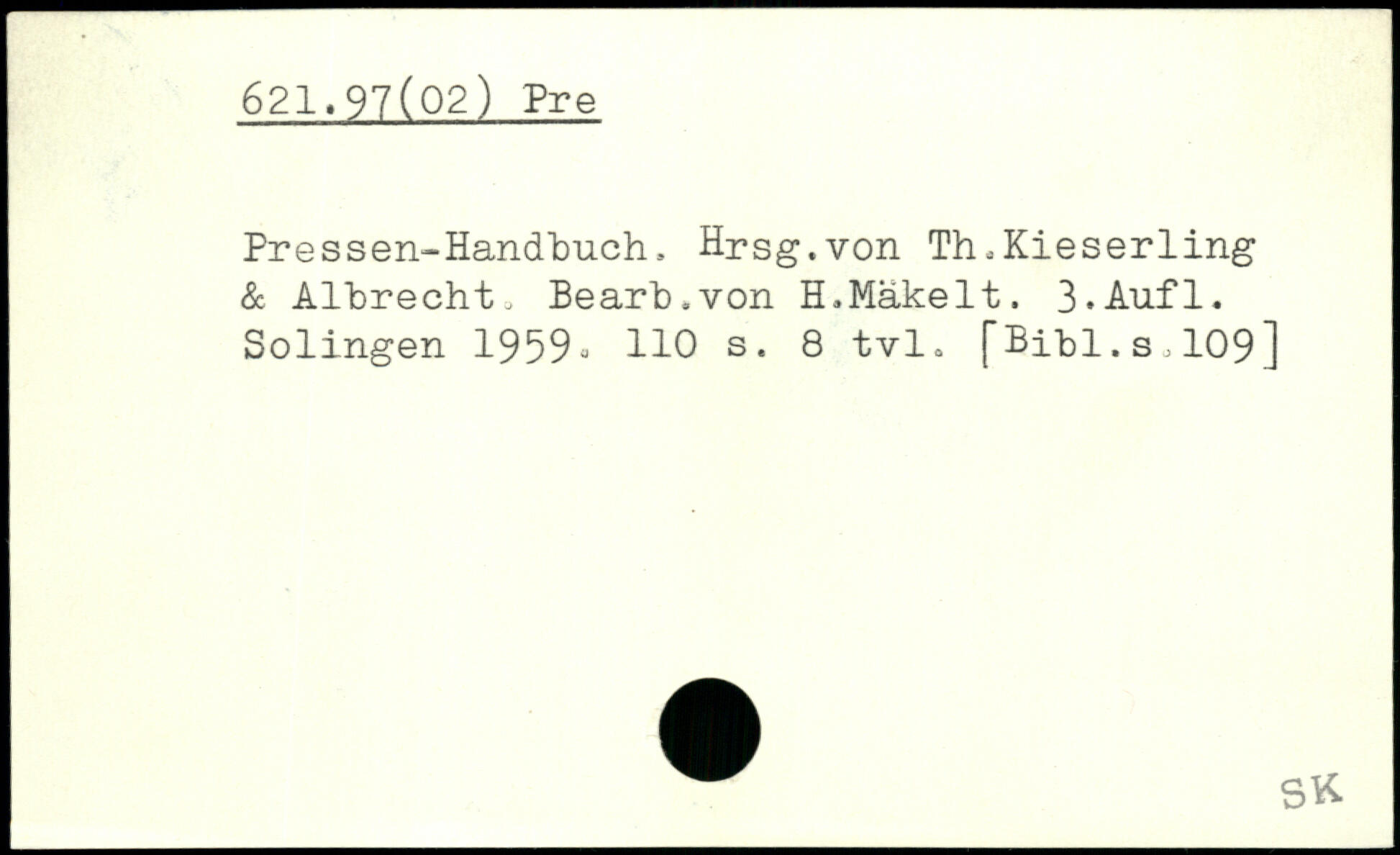 Pressen-Handbuch, Hrsg.von Th.Kieserling & Albrecht, Bearb.von H.Mäkelt. 3-Aufl. Solingen 1959, HO s. 8 tvl.