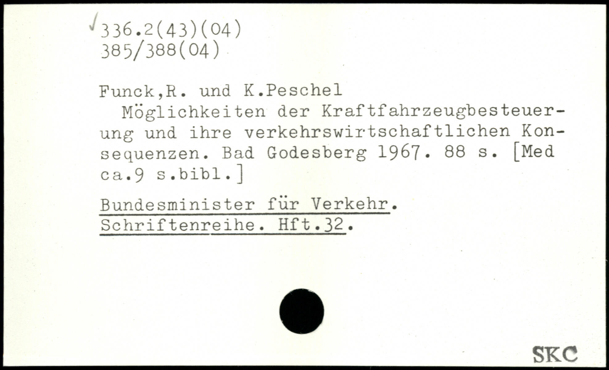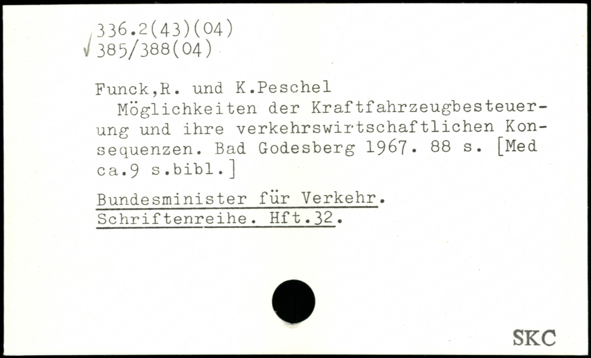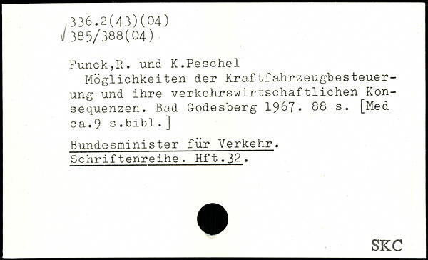 Möglichkeiten der Kraftfahrzeugbesteuer-ung und ihre verkehrswirtschaftlichen Konsequenzen. Bad Godesberg 1967.