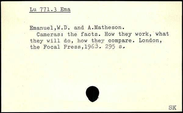 EmanueljW.D. and A.Matheson. Cameras: the facts. How they work, what they will do, how they compare. London, the Focal Press, 196:3.