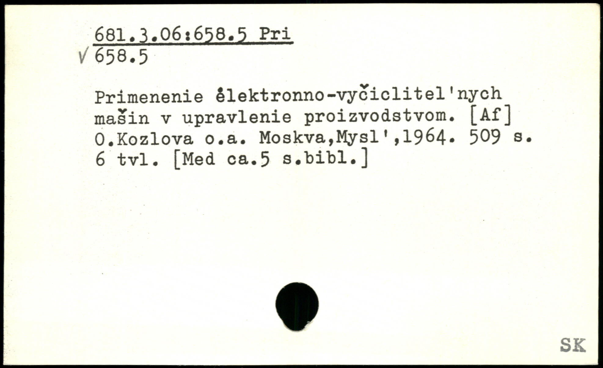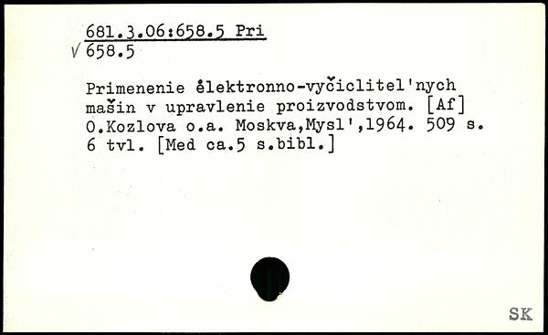 Primenenie êlektronno-vyeiclitel'nych masin v upravlenie proizvodstvom. [Af] 0.Kozlova o.a. Moskva,Mysl',1964.