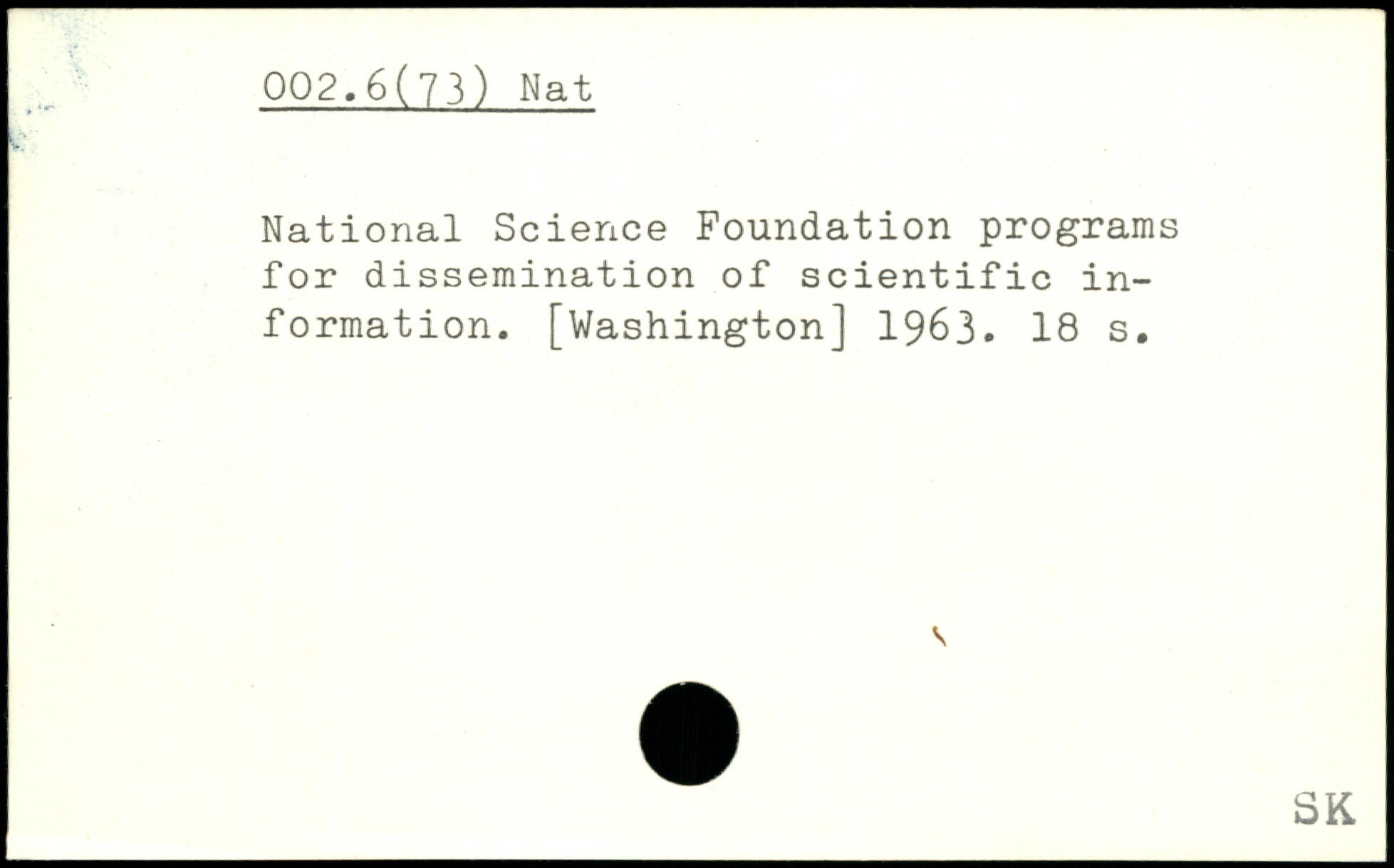 National Science Foundation programs for dissemination of scientific information.