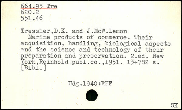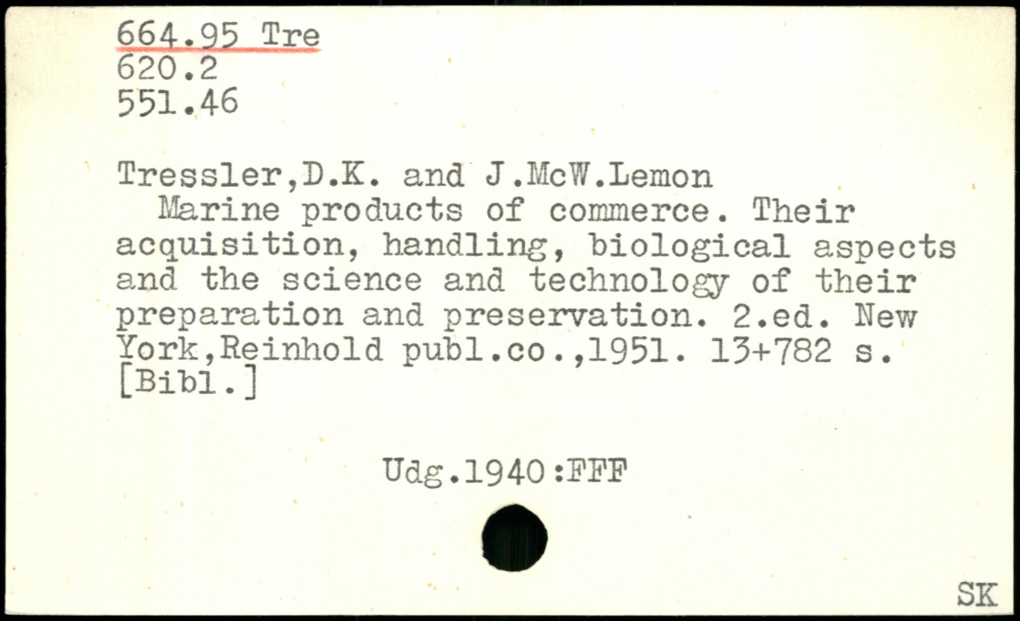 Marine products of commerce. Their acquisition, handling, biological aspects and the science and technology of their preparation and preservation.