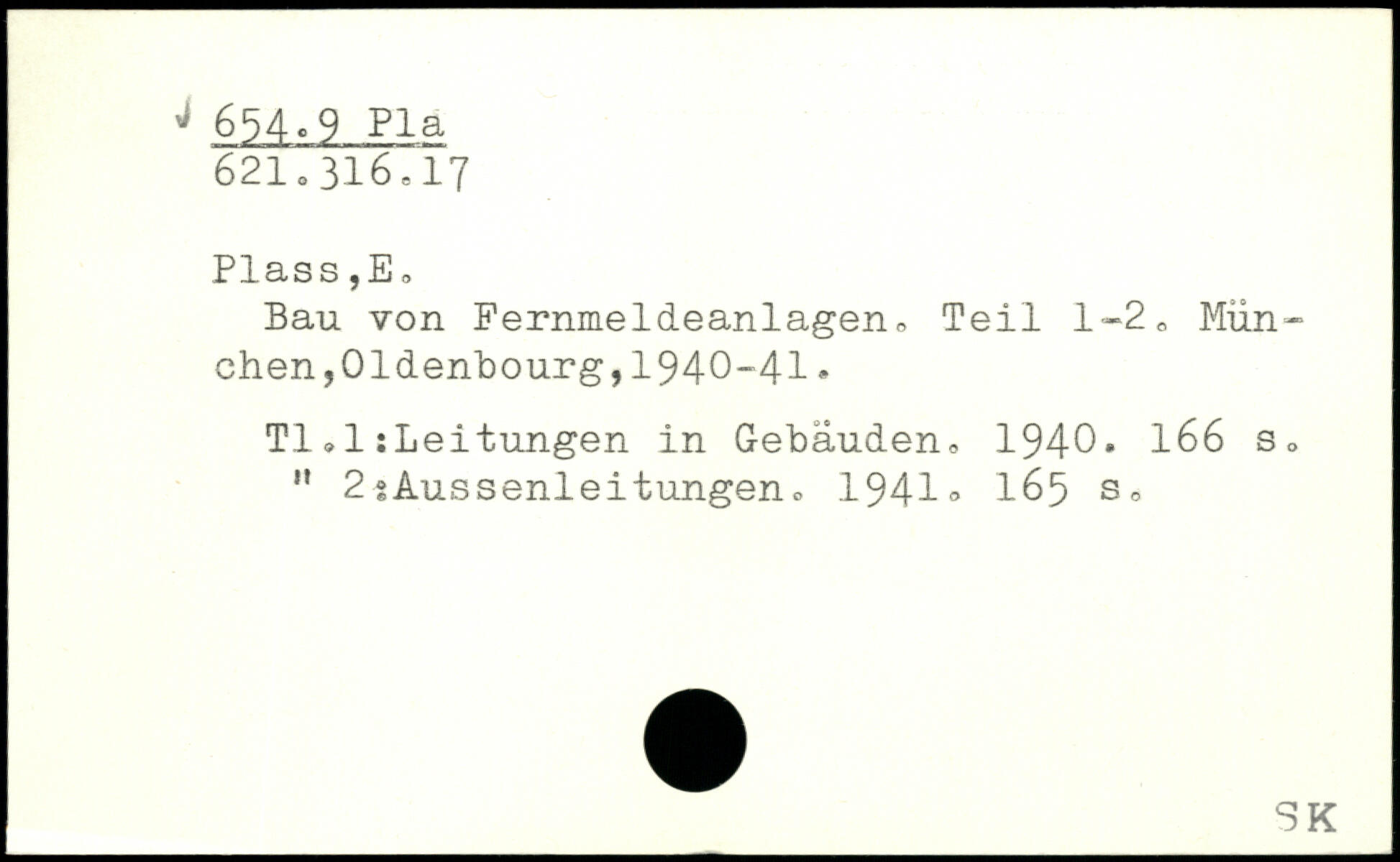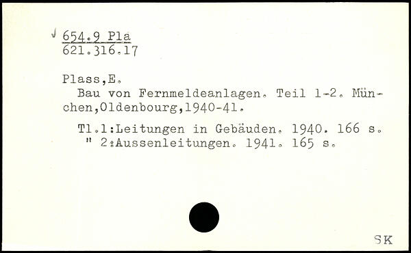 Bau von Fernmeldeanlagen, Teil 1-2, München ,01denbourg,1940-41. TI,1:Leitungen in Gebäuden, 1940.