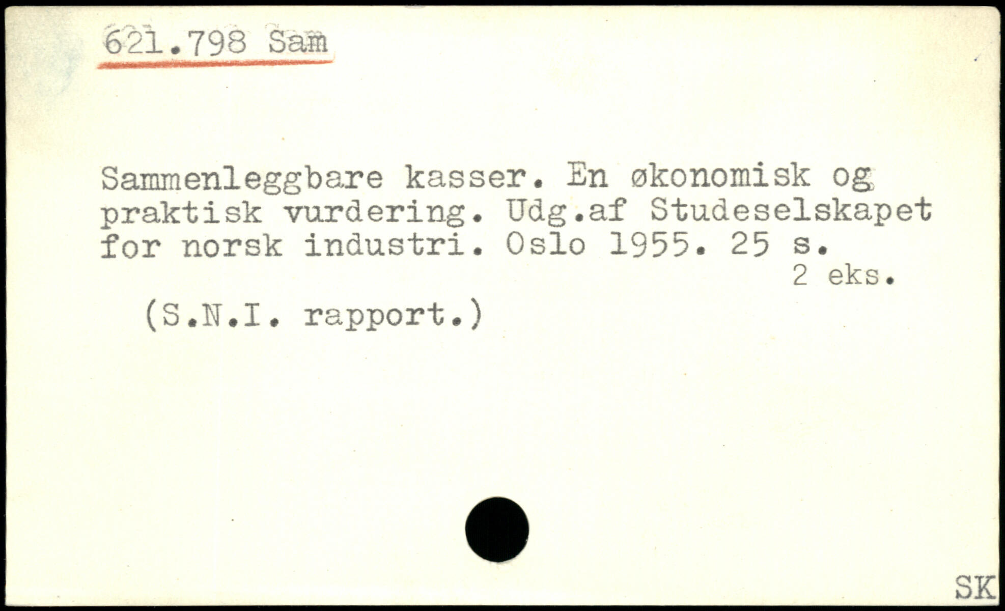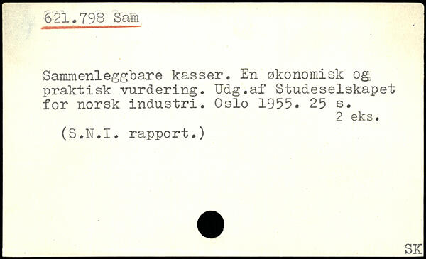 Sammenleggbare kasser. En økonomisk og praktisk vurdering. Udg.af Studeselskapet for norsk industri. Oslo 1955.