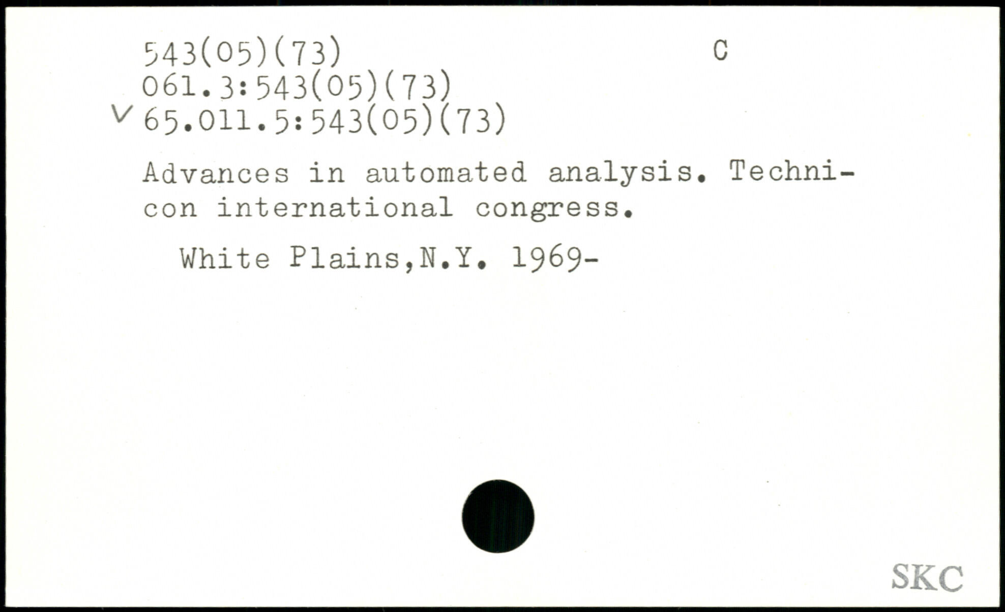 Advances in automated analysis, Techni-con international congress. White Plains,N.Y. 1969-