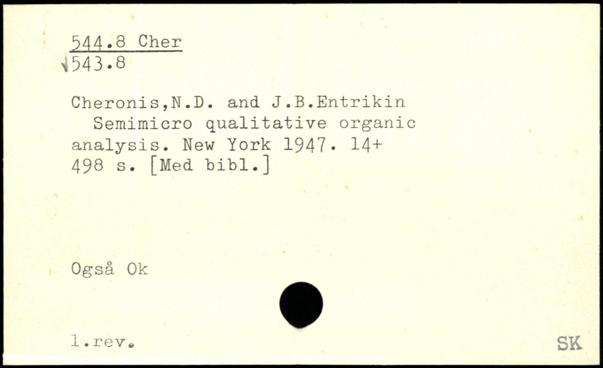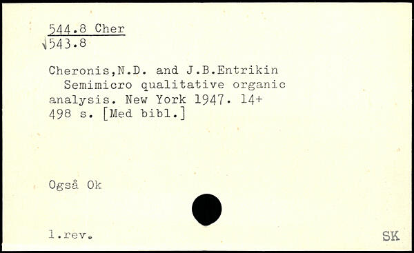 Cheronis,N.D. and J.B.Entrikin Semimicro qualitative organic analysis.