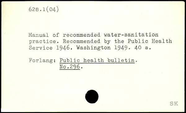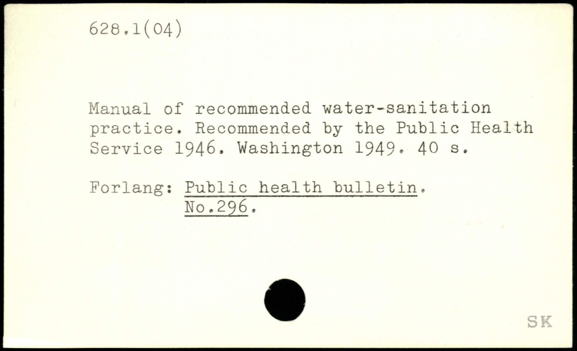 Manual of recommended water-sanitation practice. Recommended by the Public Health Service 1946