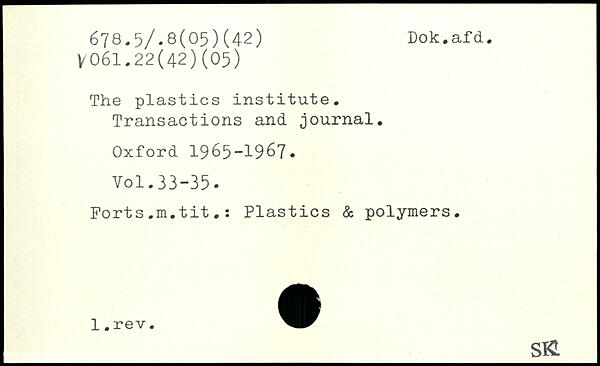 The plastics institute. Transactions and journal.
