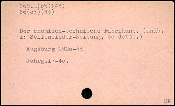 Der chemisch-technische Fabrikant, (indb. i: Seifensieder-Zeitung, se dette.) Augsburg 192o-43 Jahrg.l7-4o