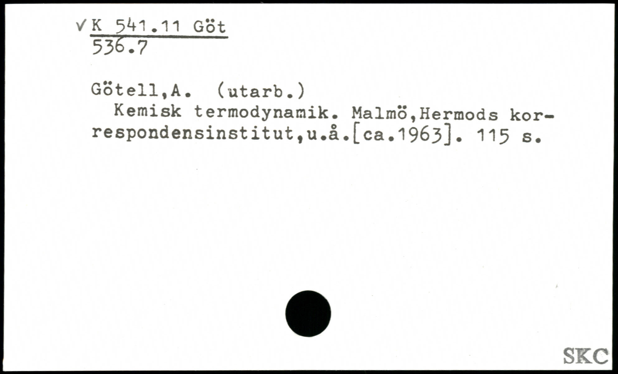 Kemisk termodynamik. Malmö,Hermods korrespondensinstitut, u.å.[ca.1963].