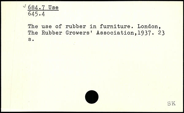 The use of rubber in furniture. London, The Rubber Growers' Association,1937.