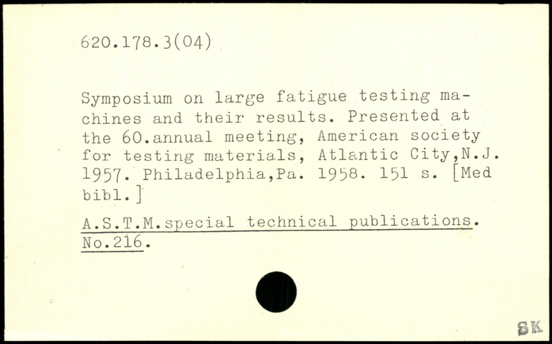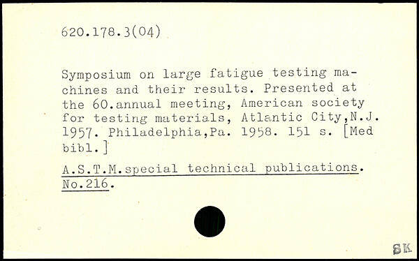 Symposium on large fatigue testing machines and their results. Presented at the 60.annual meeting, American society for testing materials, Atlantic City,N.J. 1957. Philadelphia,Pa. 1998.
