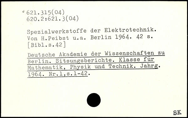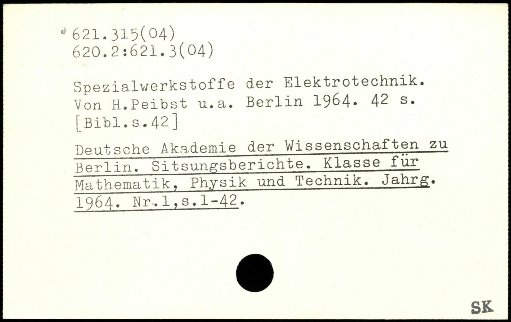 Spezialwerkstoffe der Elektrotechnik. Von H.Peibst u.a.