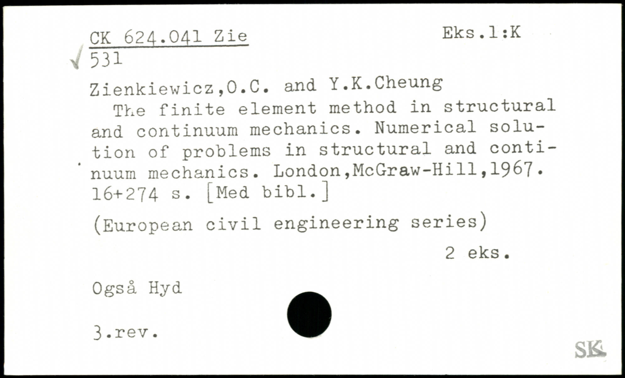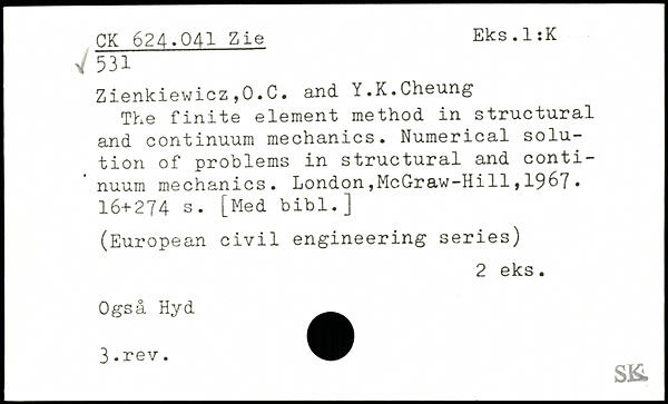 The finite element method in structural and continuum mechanics. Numerical solution of problems in structural and continuum mechanics. London,McGraw-Hill,19^7.
