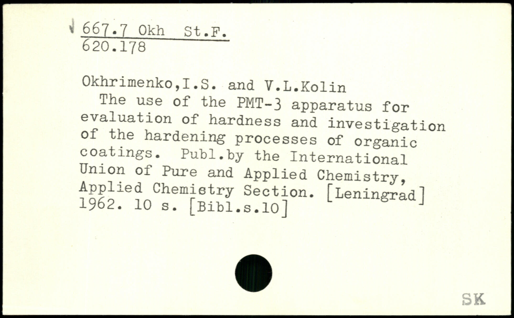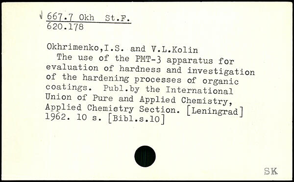 The use of the PMT-3 apparatus for evaluation of hardness and investigation of the hardening processes of organic coatings.